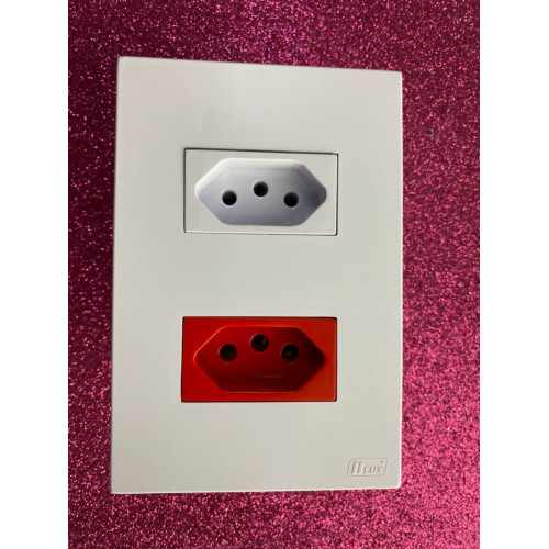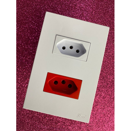 1 - CJ TOMADA DUPLA 10A + 20A VERMELHO 4X2 - RECTA BRANCO SATIN FOSCO - BRS12171-1BRVM