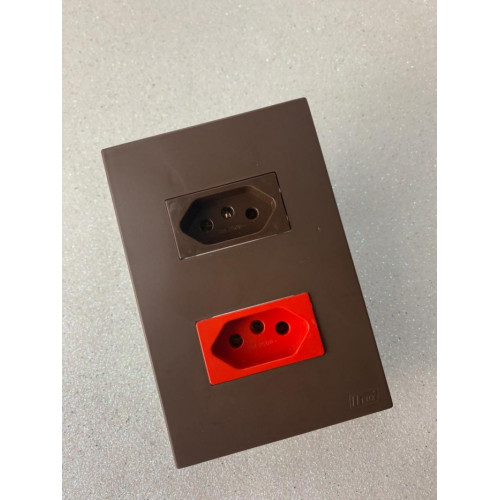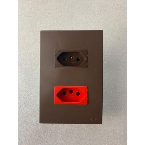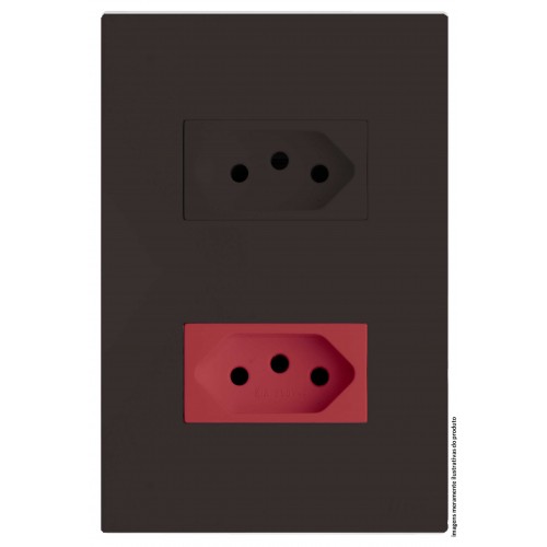 1 - CJ TOMADA DUPLA 10A + 20A VERMELHO 4X2 - RECTA CHOCOLATE SATIN FOSCO - BRS15786-6CHVM