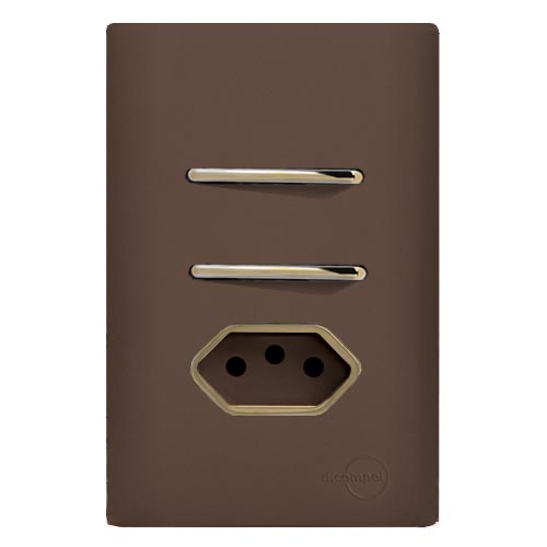 Conjunto Interruptor Duplo Simples + Tomada 10A 4x2 - Novara Marrom Fosco Gold