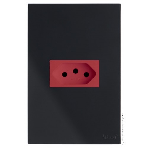 Conjunto Tomada 20A Vermelha Horizontal 4x2 - RECTA Preto Black Satin Fosco