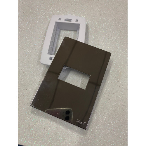 1 - PLACA P/ 1 MODULO HORIZONTAL COM SUPORTE 4X2 - RECTA ESPELHADA FUME - BRG11514-2EF.