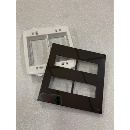 1 - PLACA P/ 4 MODULOS SEPARADOS COM SUPORTE 4X4 - RECTA ESPELHADA FUME - BRG11586-1EF.