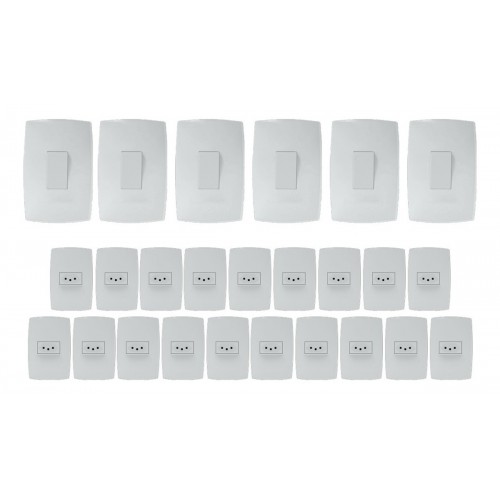 Kit 19 Tomadas 10A + 6 Interruptores Simples - (HOME BRANCA)