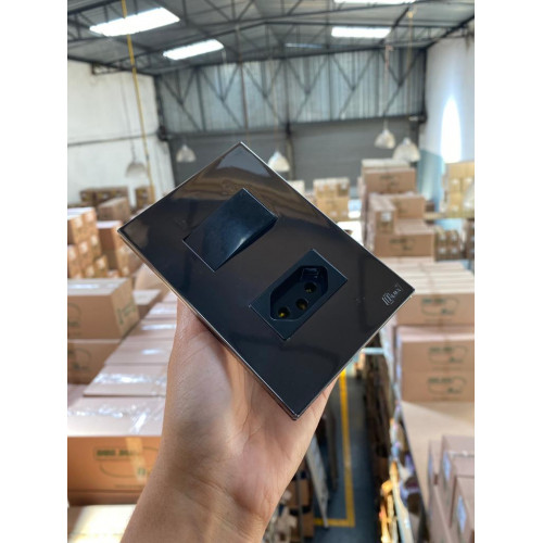 1 - CJ INTERRUPTOR PARALELO + TOMADA 20A 4X2 - RECTA ESPELHADA FUME (MODULOS HOME GRAFITE) - BRG11286-0EF