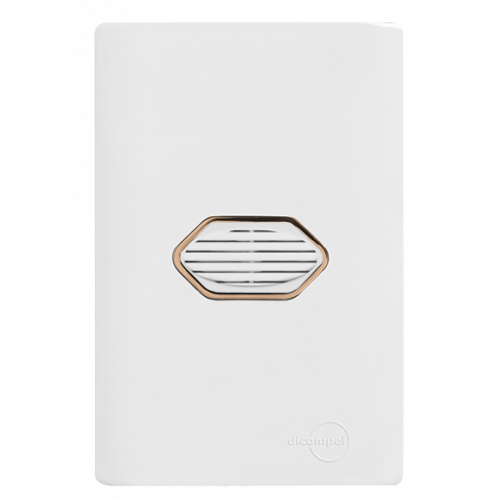 1 - CJ CAMPAINHA CIGARRA BIVOLT (SOM) COM SUPORTE 4X2 - DICOMPEL NOVARA BRANCO C/ OURO ROSE - DNV1100/350BROR