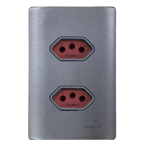 2. MODULO TOMADA 20A VERMELHO - DICOMPEL NOVARA PRETO GRAFITE FOSCO - DNV1600/267VM