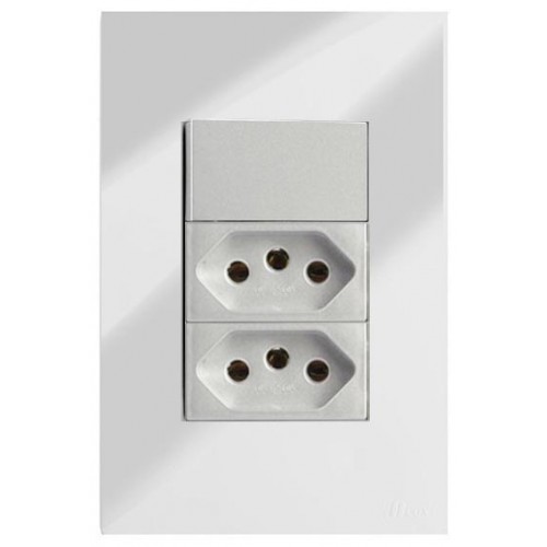 Conjunto Interruptor Paralelo + 2 Tomada 10a 4x2 - RECTA Espelhada Gloss (Módulo Prata)