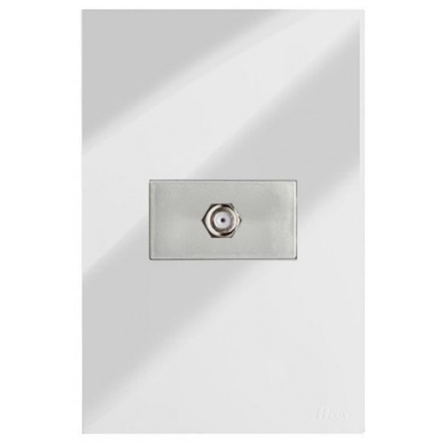 Conjunto Coaxial TV Horizontal 4x2 - RECTA Espelhada Gloss (Módulo Prata)