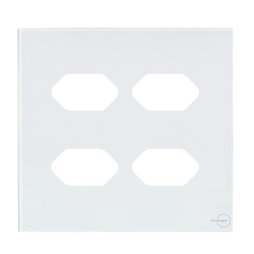 1 - PLACA P/ 4 TOMADAS COM SUPORTE 4X4 - DICOMPEL NOVARA GLASS BRANCO - DNGB-40000/41