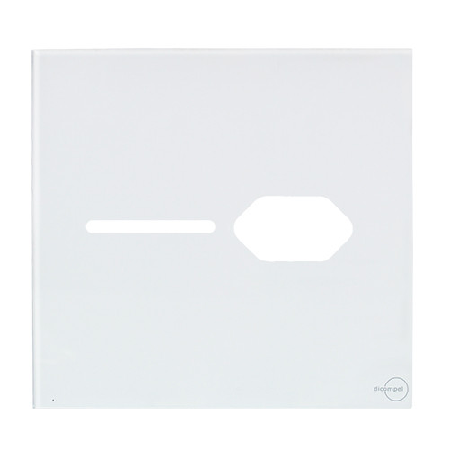 1 - PLACA P/ 1 INTERRUPTOR + TOMADA COM SUPORTE 4X4 - DICOMPEL NOVARA GLASS BRANCO - DNGB-40000/28