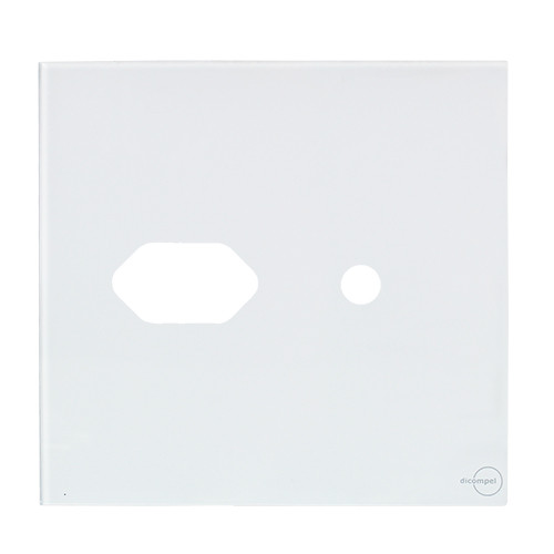 1- PLACA P/ 1 TOMADA + FURO COM SUPORTE 4X4 - DICOMPEL NOVARA GLASS BRANCO - DNGB-40000/43