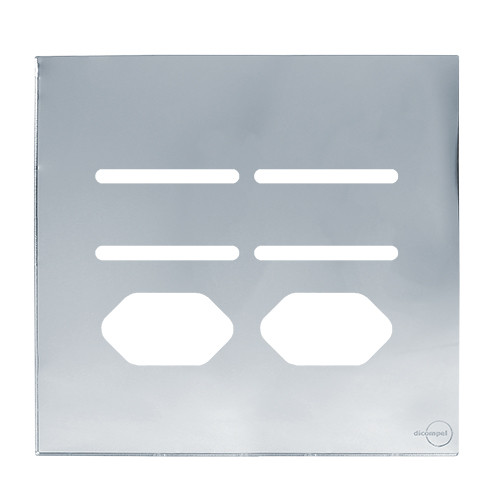1 - PLACA P/ 4 INTERRUPTORES + TOMADA DUPLA COM SUPORTE 4X4 - DICOMPEL NOVARA GLASS ESPELHADA - DNGE-40000/33