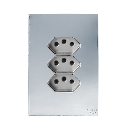 1. CJ TOMADA TRIPLA 20A COM SUPORTE 4X2 - DICOMPEL NOVARA PRATA CROMADO - DNV1300/151PRCR