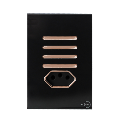1. MODULO TOMADA 10A - DICOMPEL NOVARA PRETO BRILHANTE C/ OURO ROSE - DNV1700/274PBOR