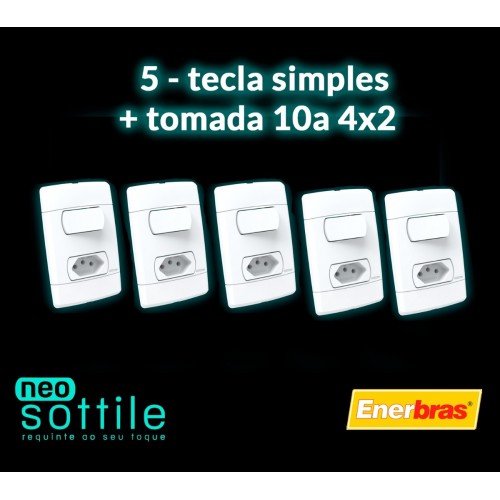 Kit 05 Peças - Conjunto Interruptor Simples + Tomada 10a - Enerbras Neo Sottile