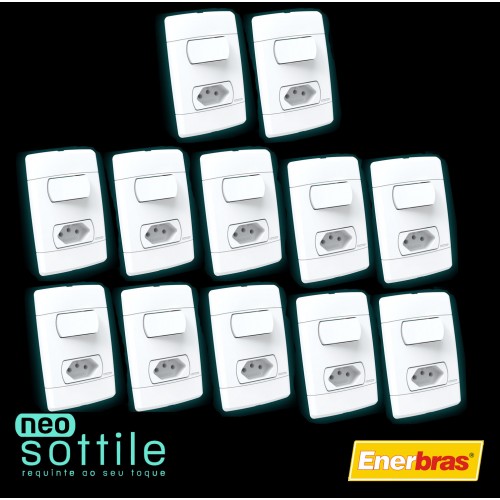 Kit 12 Peças - Conjunto Interruptor Simples + Tomada 10a - Enerbras Neo Sottile