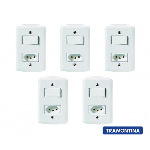 Kit 5 Conjuntos Interruptor Com Tomada 10a - Tramontina Lux2