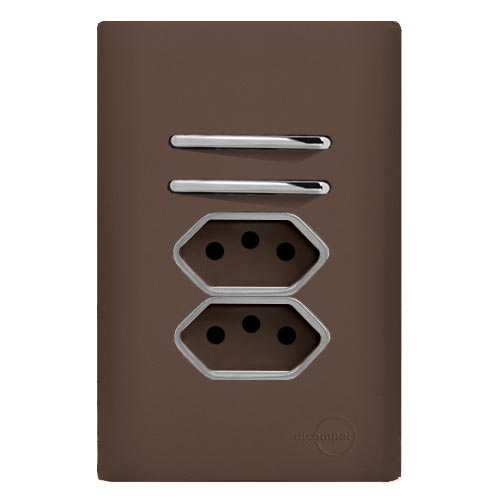 Conjunto Interruptor Duplo Paralelo + Tomada Dupla 10a 4X2 - Novara Especiais Marrom Fosco