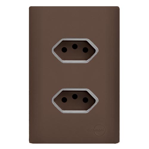 Conjunto Tomada Dupla 10a + 20A - Novara Especiais Marrom Fosco