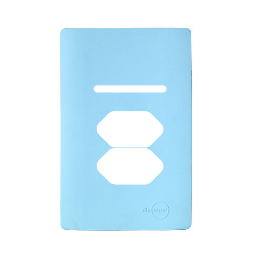 1. PLACA P/ 1 INTERRUPTOR + 2 TOMADAS COM SUPORTE 4X2 - DICOMPEL NOVARA CELESTE - DNV1500/152CL
