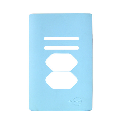 1. PLACA P/ 2 INTERRUPTORES + 2 TOMADAS COM SUPORTE (ESPECIAL) 4X2 - DICOMPEL NOVARA CELESTE - DNV1500/192CL