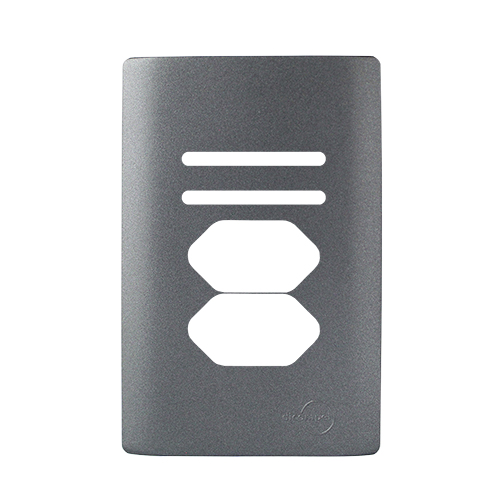 1. PLACA P/ 2 INTERRUPTORES + 2 TOMADAS COM SUPORTE (ESPECIAL) 4X2 - DICOMPEL NOVARA PRETO GRAFITE - DNV1600/192PG