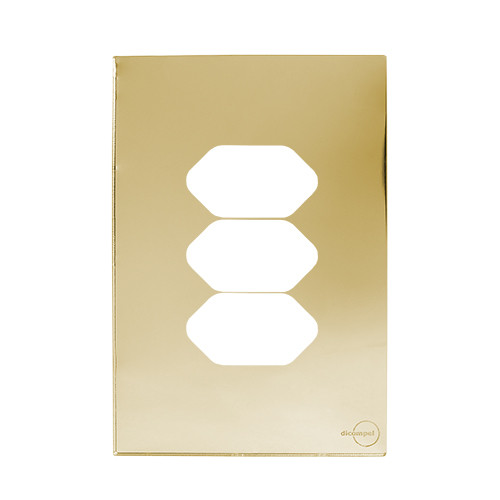 1 - PLACA P/ 3 TOMADAS COM SUPORTE 4X2 - DICOMPEL NOVARA GLASS DOURADO - DNGD-40000/18