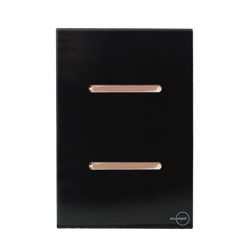 1. CJ INTERRUPTOR DUPLO SIMPLES COM SUPORTE 4X2 - DICOMPEL NOVARA PRETO BRILHANTE C/ OURO ROSE - DNV1700/5PBOR