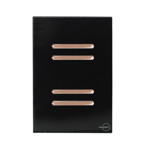 1. CJ INTERRUPTOR QUADRUPLO SIMPLES (ESPECIAL) 4X2 - DICOMPEL NOVARA PRETO BRILHANTE C/ OURO ROSE - DNV1700/172PBOR
