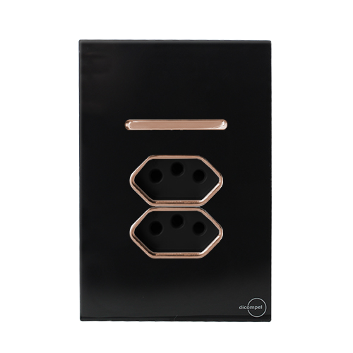 2. MODULO TOMADA 10A - DICOMPEL NOVARA PRETO BRILHANTE C/ OURO ROSE - DNV1700/274PBOR