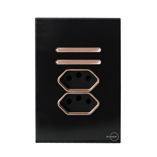 2. MODULO TOMADA 10A - DICOMPEL NOVARA PRETO BRILHANTE C/ OURO ROSE - DNV1700/274PBOR