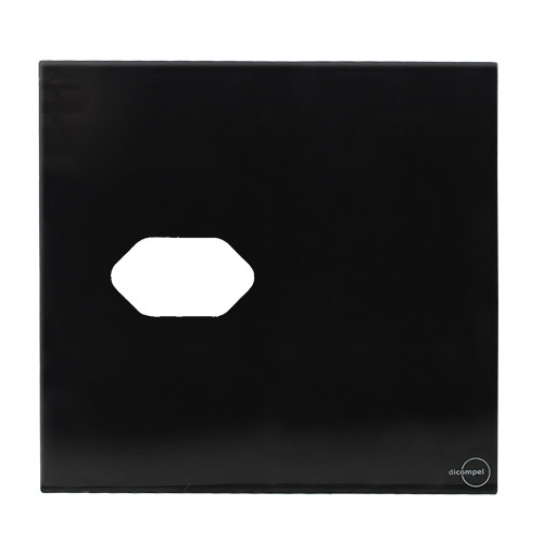1 - PLACA P/ 1 TOMADA COM SUPORTE 4X4 - DICOMPEL NOVARA GLASS PRETO BRILHANTE - DNGP-40000/44