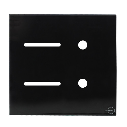 1 - PLACA P/ 2 INTERRUPTORES + 2 FUROS COM SUPORTE 4X4 - DICOMPEL NOVARA GLASS PRETO BRILHANTE - DNGP-40000/37