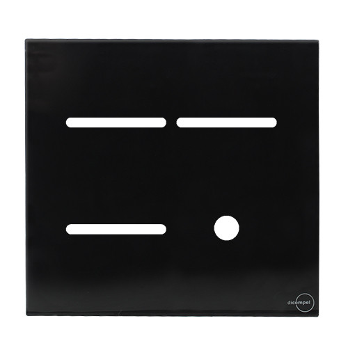 1 - PLACA P/ 3 INTERRUPTORES + FURO COM SUPORTE 4X4 - DICOMPEL NOVARA GLASS PRETO BRILHANTE - DNGP-40000/36