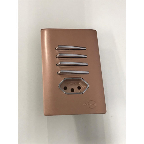 1 - MODULO TOMADA 10A - DICOMPEL NOVARA OURO ROSE CROMADO - DNV1500/70ORCR