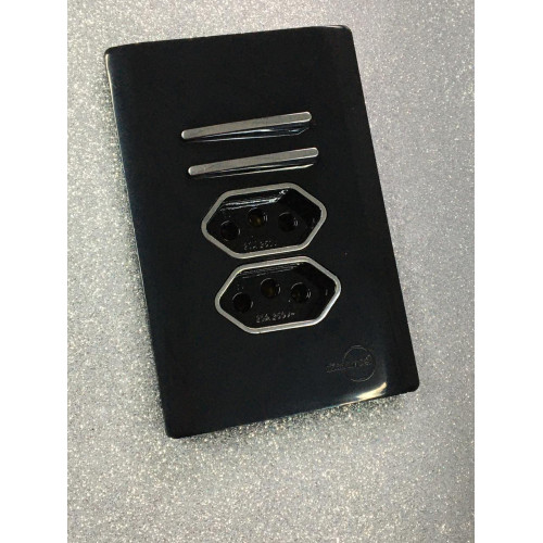 1. PLACA P/ 2 INTERRUPTORES + 2 TOMADAS COM SUPORTE ( ESPECIAL ) 4X2 - DICOMPEL NOVARA PRETO BRILHANTE - DNV1700/192PB