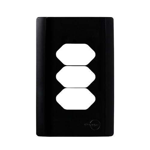 1. PLACA P/ 3 TOMADAS COM SUPORTE 4X2 - DICOMPEL NOVARA PRETO BRILHANTE - DNV1700/149PB