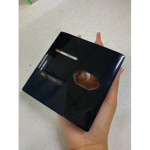 1. PLACA P/ 2 INTERRUPTORES + TOMADA COM SUPORTE 4X4 - DICOMPEL NOVARA PRETO BRILHANTE - DNV1700/107PB