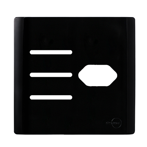 1. PLACA P/ 3 INTERRUPTORES + TOMADA COM SUPORTE 4X4 - DICOMPEL NOVARA PRETO BRILHANTE - DNV1700/108PB