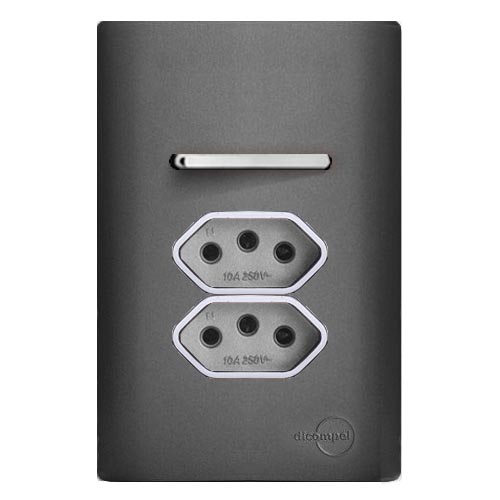Conjunto Interruptor Simples + 2 Tomadas 10a - Novara Especiais Preto Grafite