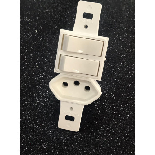 1. MODULO INTERRUPTOR DUPLO SIMPLES + TOMADA 20A - DICOMPEL NOVARA MONACO BRANCO - DC7200/16BR