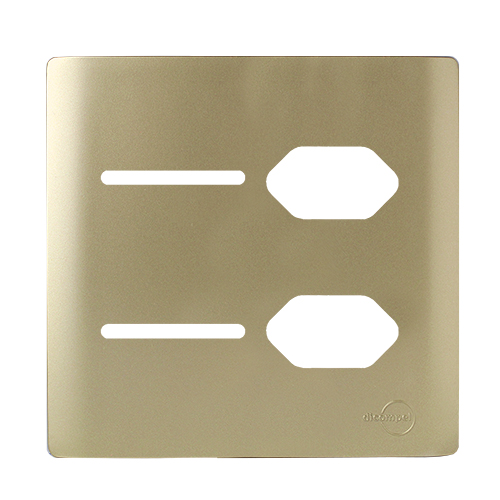 1. PLACA P/ 2 INTERRUPTORES + 2 TOMADAS COM SUPORTE 4X4 - DICOMPEL NOVARA DOURADO - DNV1400/91DO