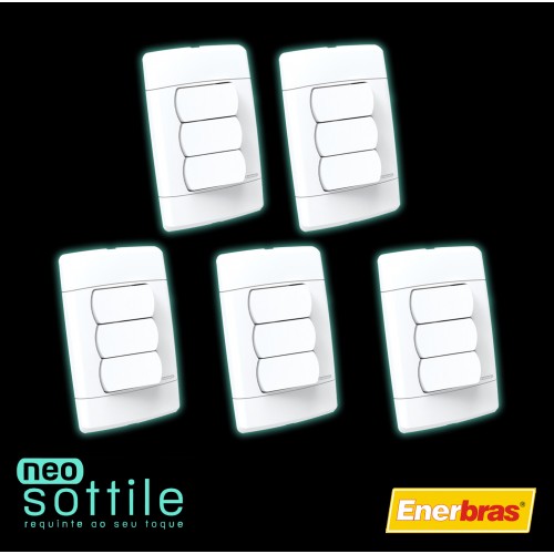 Kit 5 Peças Interruptor Triplo Simples Enerbras Neo Sottile