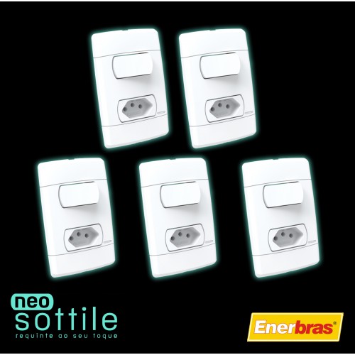 Kit 5 Pçs Interruptor Simples+ Tomada 20a - Enerbras Neo Sottile