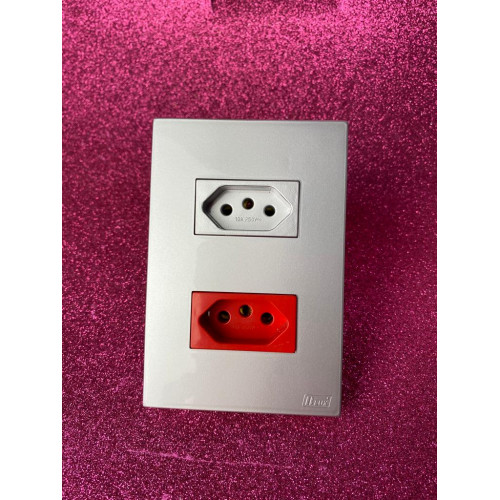 1 - CJ TOMADA DUPLA 10A + 20A VERMELHO 4X2 - RECTA PRATA GLOSS - BRG11086-8PRVM