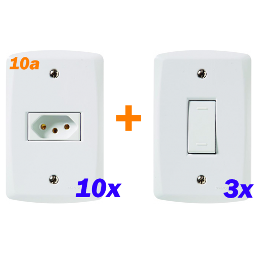 Kit 10 Tomadas 10A + 3 Interruptor Simples - Tramontina LUX2