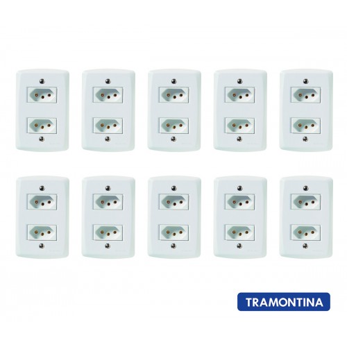 Kit 10 Conjuntos Tomada Dupla 10a - Tramontina Lux2