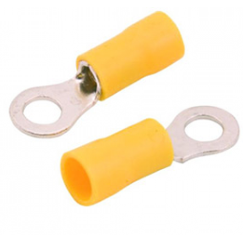 100 Conector Terminal Pré Isolado Olhal - Amarelo para fio 4,0mm a 6,0mm