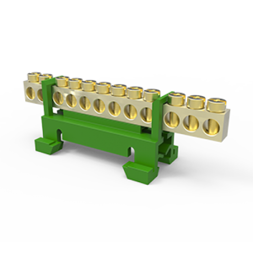 Barramento 12 Polos com Suporte para trilho DIN Verde Terra