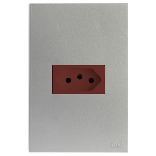 Conjunto Tomada 20a Vermelho Horizontal 4x2 - RECTA PRATA SATIN FOSCO